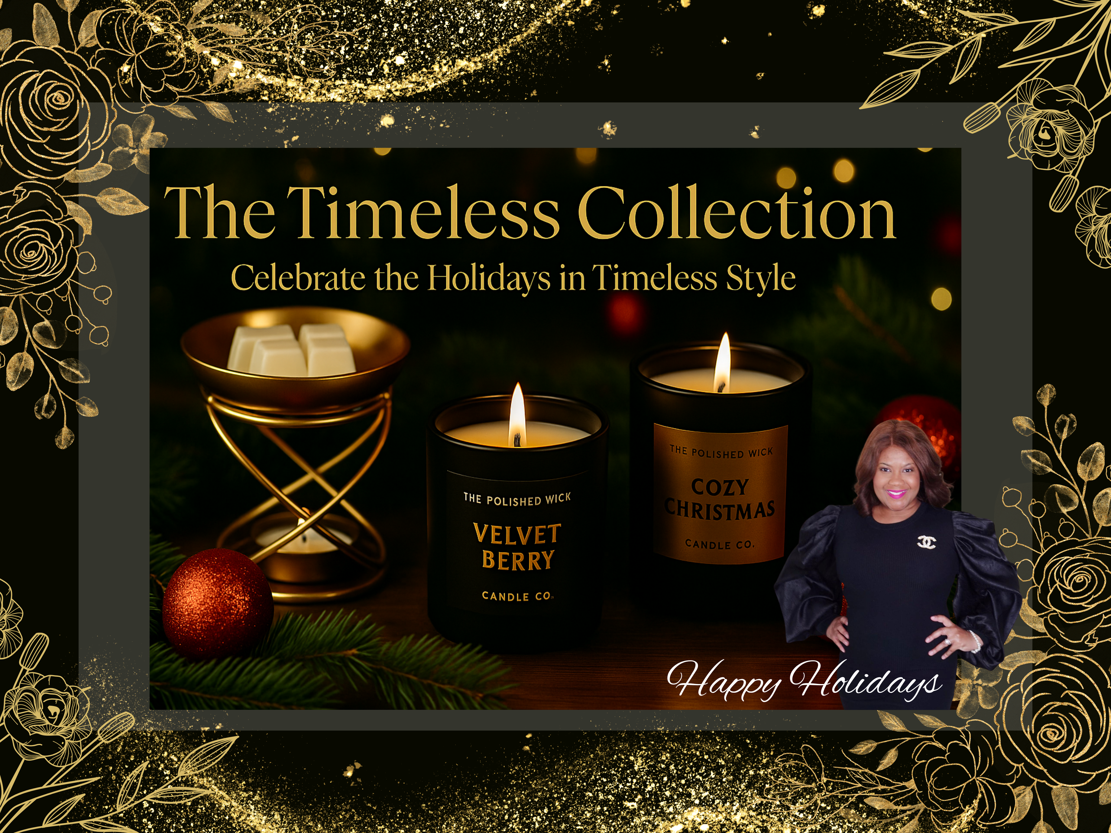 Wrap your home in the warmth and elegance of the season with The Timeless Holiday Collection by The Polished Wick. Featuring three luxurious fragrances—Velvet Berry, Cozy Christmas, and Holiday Glow—this collection blends rich tradition with refined sophistication.